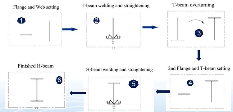 ٹی بیم اور ایچ بیم کی پیداوار کا بہاؤ