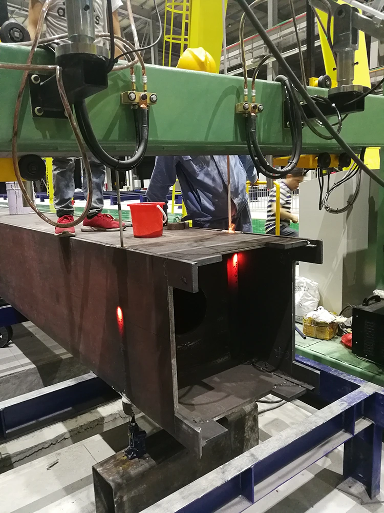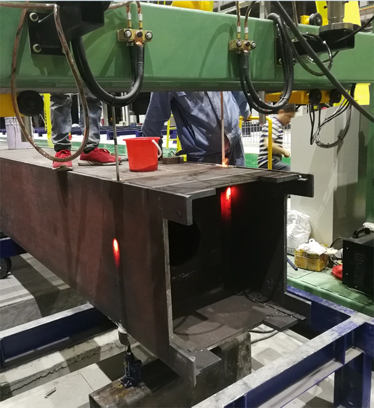 باکس کالم ESW الیکٹروسلاگ ویلڈنگ مشینیں اسٹیل ڈھانچے کی صنعت کے لئے جنفینگ ویلڈنگ اور کاٹنے والی کمپنی کے ذریعہ لانچ کی گئی ایک بہترین مصنوعات ہیں۔ یہ ایک خاص ویلڈنگ کا سامان ہے جو خاص طور پر ویلڈنگ باکس کالم کے لئے ڈیزائن کیا گیا ہے۔ کافی سختی اور ٹورسن مزاحمت کو یقینی بنانے کے ل box ، بوکس کالم تانے بانے میں ، بافلز (یعنی سخت پلیٹیں) عام طور پر باکس کالم کے اندر سے ویلڈیڈ ہوتے ہیں۔ یہ مشین باکس کالم کی بیرونی پلیٹ اور اندرونی بافلز کے درمیان ویلڈنگ کے لئے ایک خاص سامان ہے۔ سامان کے مندرجہ ذیل فوائد ہیں: