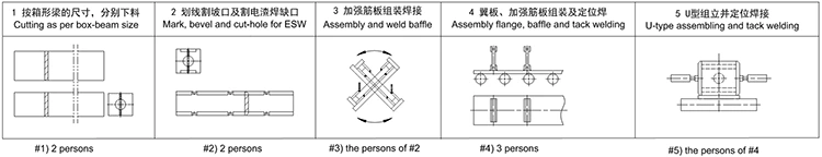 پلیٹوں سے لے کر H بیم اور حتمی معائنہ تک پیداوار کے لئے پروڈکشن فلو چارٹ مندرجہ ذیل ہے۔